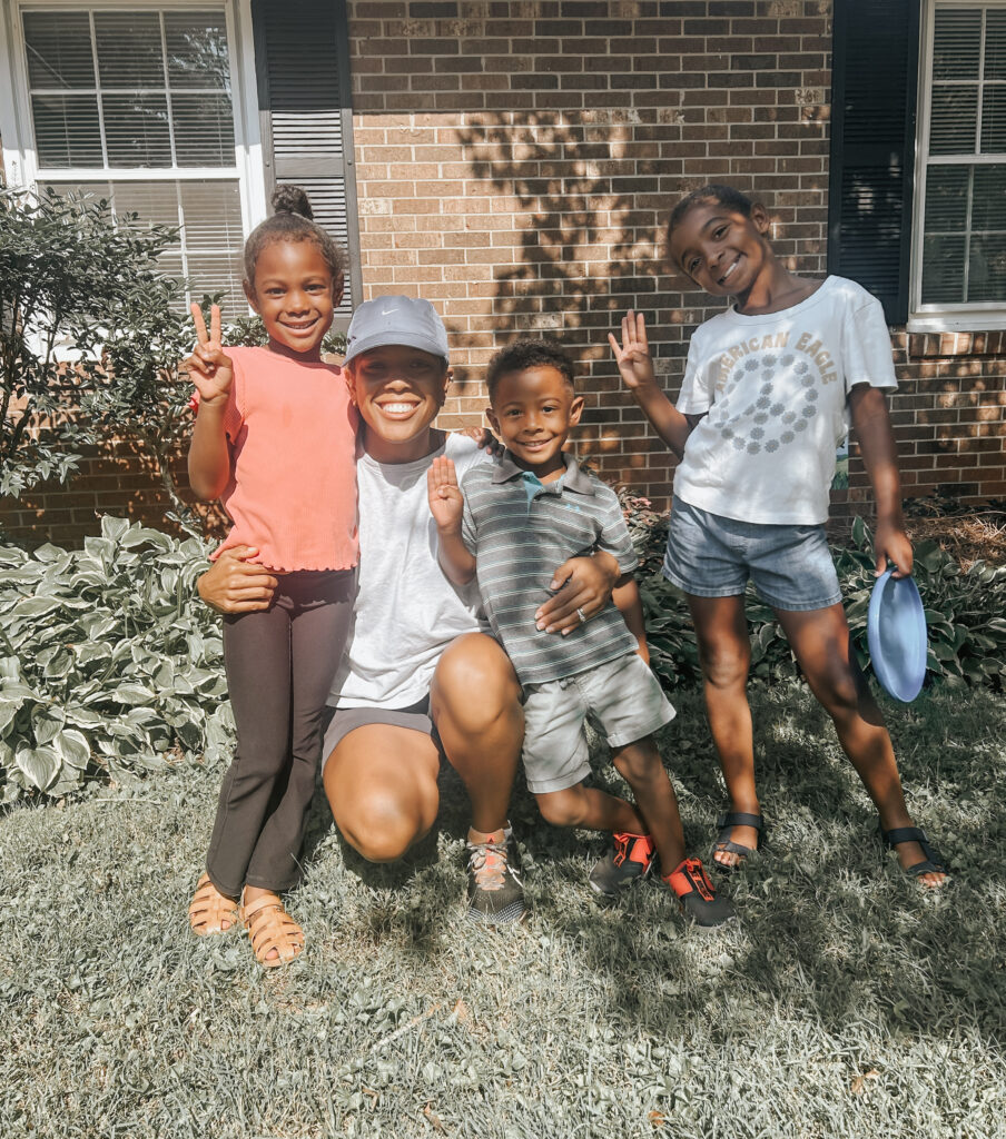 Friends, hi! I’ve taken about a month away from consistently posting online, and it’s been so refreshing! I needed that time to hone in on finalizing our curriculum choices for the year and also finalizing our move to a new neighborhood! We are still living with parents, but in a new house with much more space, and in a beautiful established neighborhood. And get this! Our house is directly across the street from my brother’s house! This means the kids can walk barefoot over to see their cousins, see what my brother is cooking, or go visit the parade of unique pets my brothers’ family owns. It’s been sweet to say the least. We gave ourselves two weeks to move in and get settled before jumping into our first day of homeschooling. Here’s our first day of school photo in front of the new house—